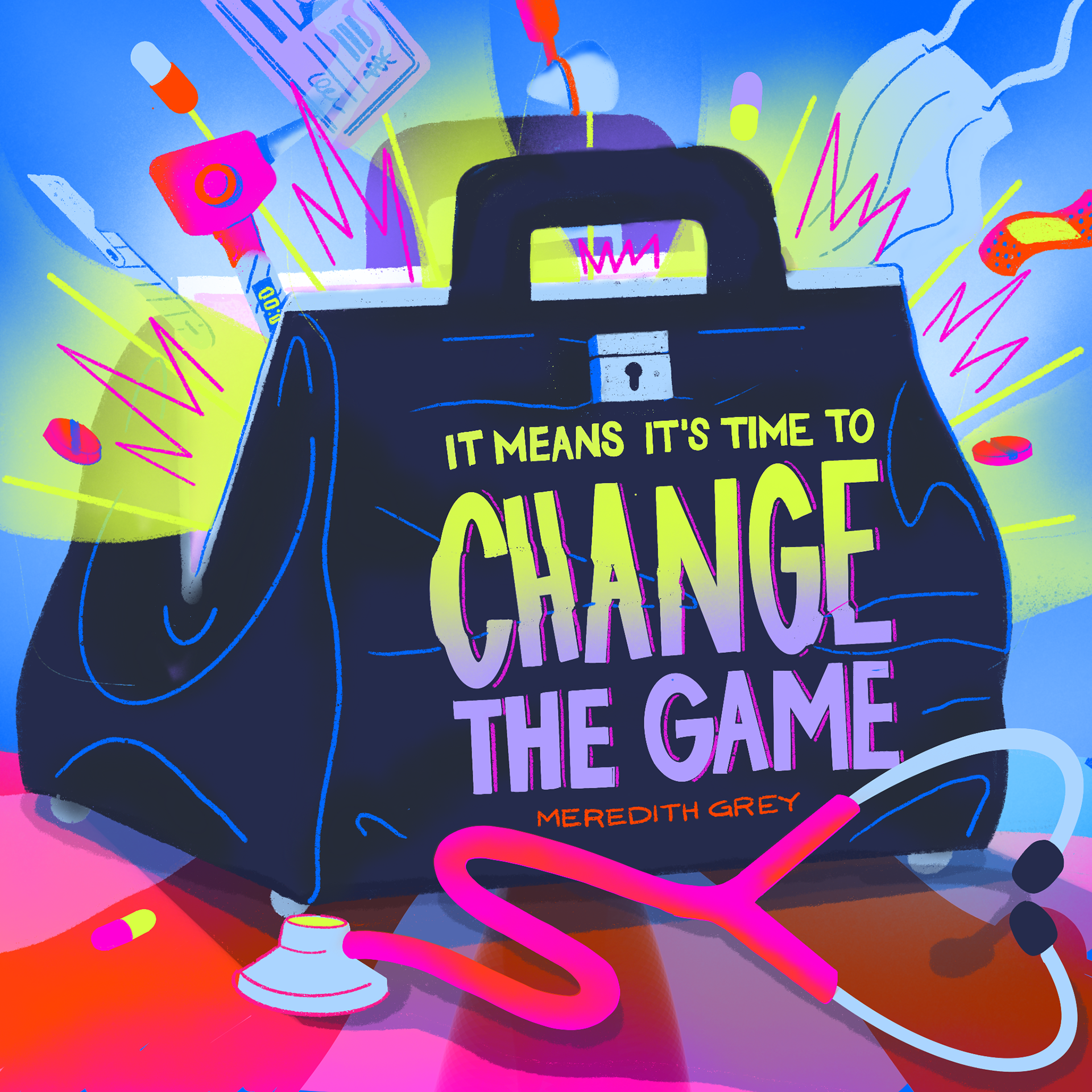 Mantra illustration of "It means it's time to change the game" by Meredith Grey of Grey's Anatomy